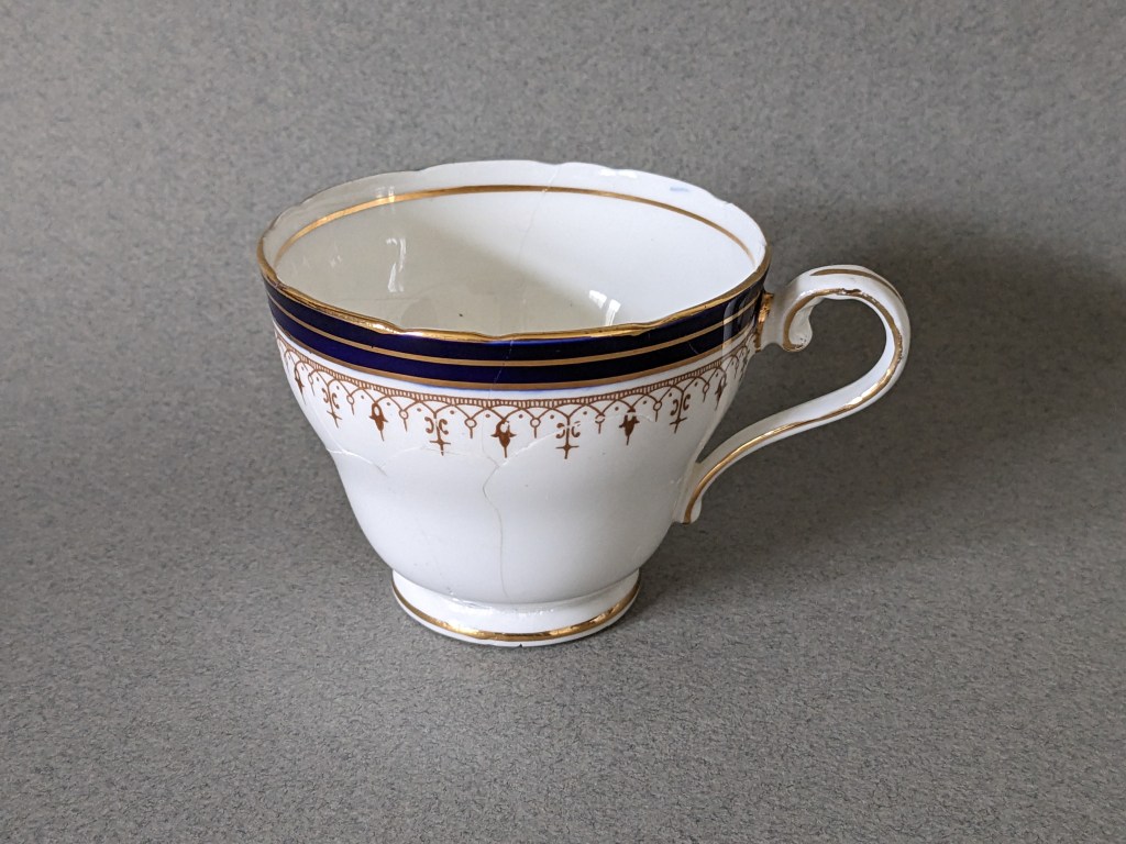As part of a undergraduate course, this bone china teacup was a lesson in the reconstruction of ceramics. I was given a non-collection teacup, instructed to break it, and given B72 and a few other materials with which to reconstruct it.