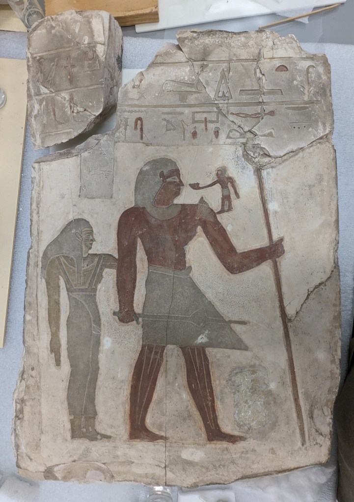 This limestone stele treatment required cleaning with agar gel and a buffered citric acid solution, reattaching loose pieces, stabilization of several cracks, and creating fills with B72 bulked with microballoons.